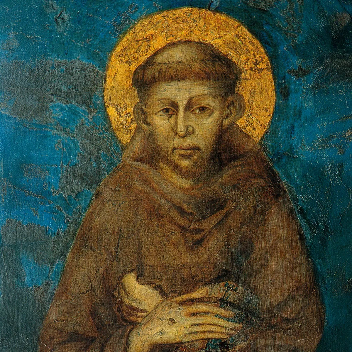Réintégration picturale à »tratteggio » sur la manche de St François d’après les préconisations de Cesare Brandi pour une réintégration picturale déontologique, qui se distingue de l’original par la juxtaposition de traits de couleurs complémentaires afin de la repérer par une vue rapprochée et de la confondre par une vue d’ensemble.