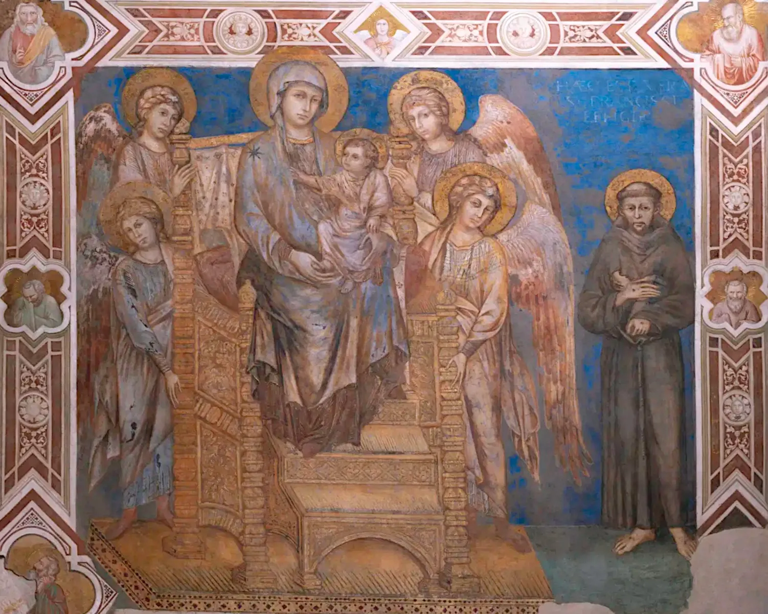 Cimabue- détail fresque – Vierge en trône – Fresque-Saint François d’Assise- Assise.