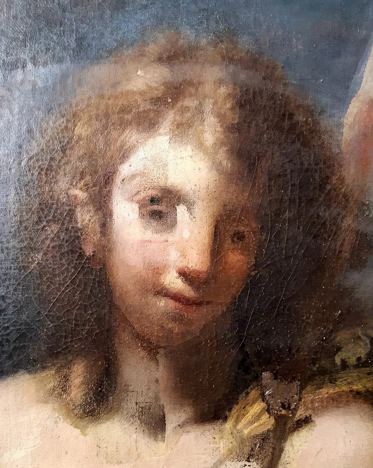 Michel Serre – Actéon – Huile sur toile – Avant, pendant et après restauration – Collection particulière.